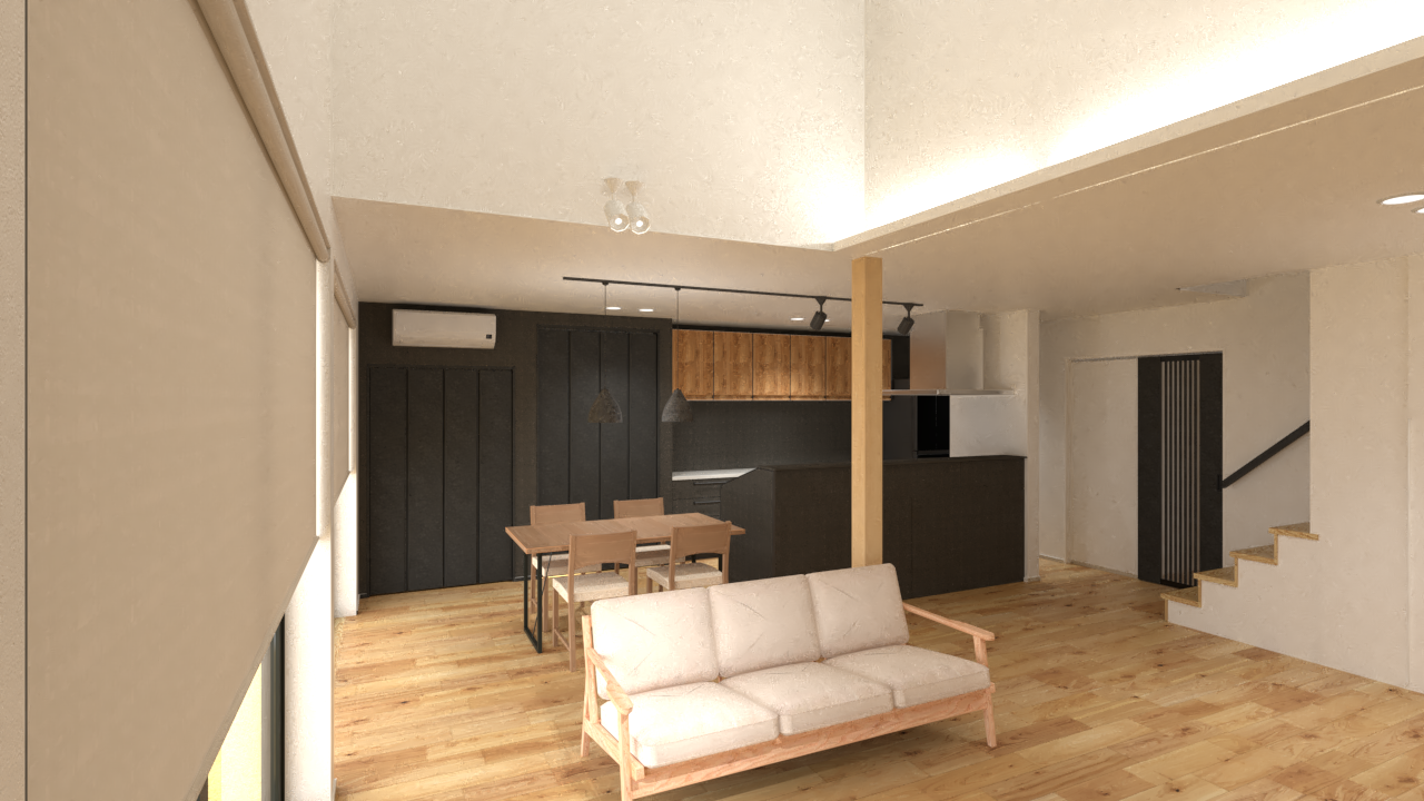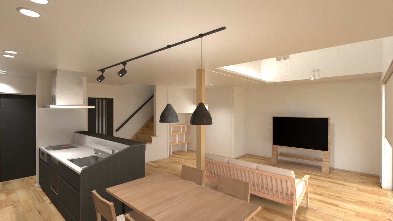 ブラックやグレーで統一されたキッチンは、LDKのアクセントになりより洗練されたクールな印象をプラス。