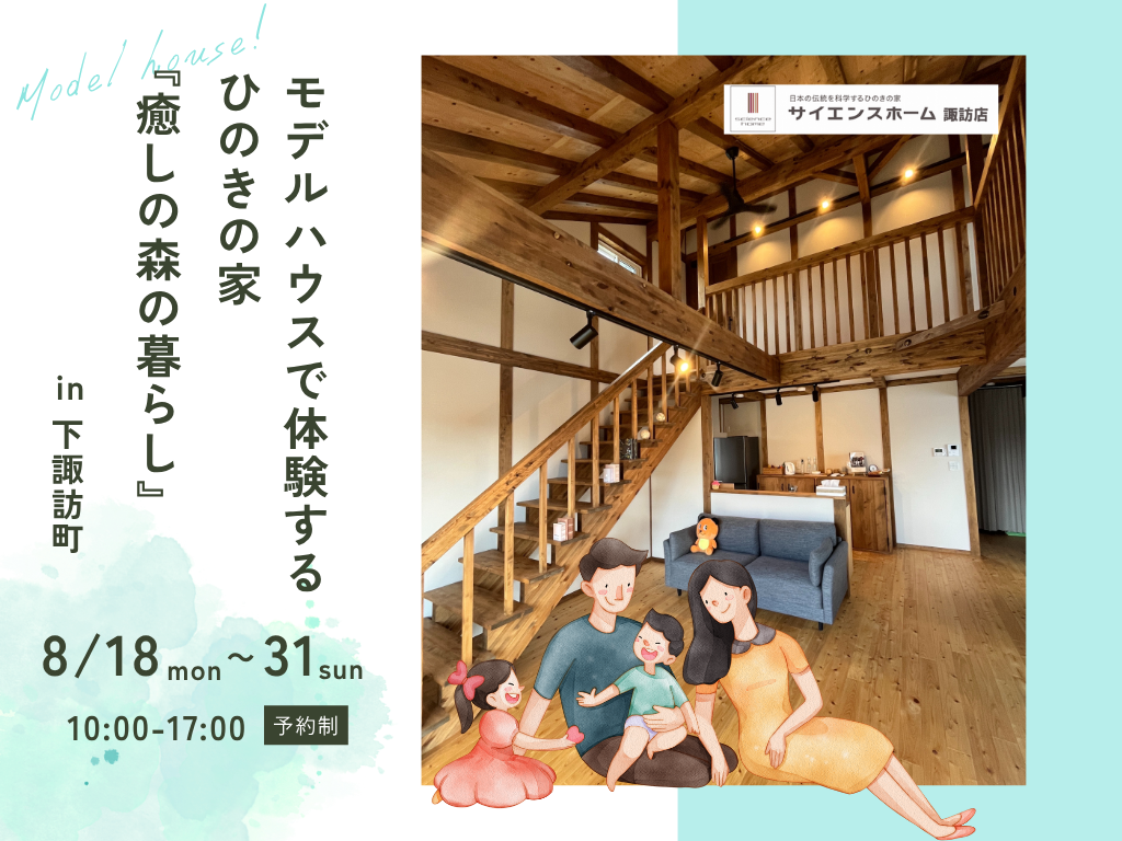「なぜ夏も涼しく、家族が安心して暮らせるのか」 ひのきがもたらす、天然の調湿効果や抗菌作用といった秘密を、実際にモデルハウスでご説明いたします。
