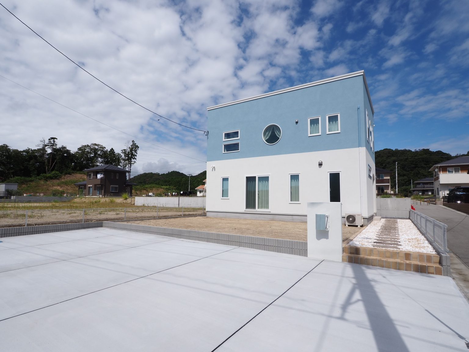 青空に映えるキューブタイプのハグハウス