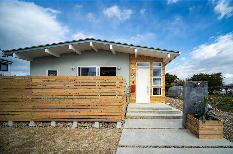 白壁×木材、解放感のある間取り、大きな窓やデッキなど、リゾートのような雰囲気が魅力です。