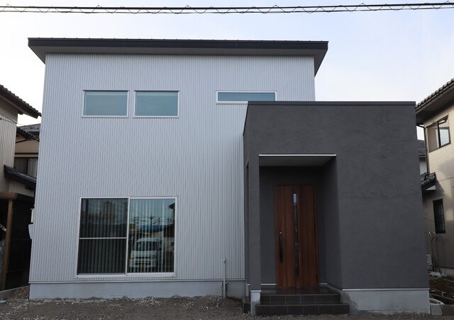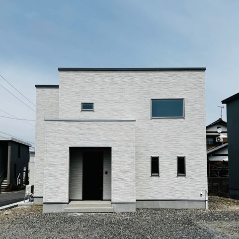 スタイリッシュなのにかわいらしい、四角い白い外観。