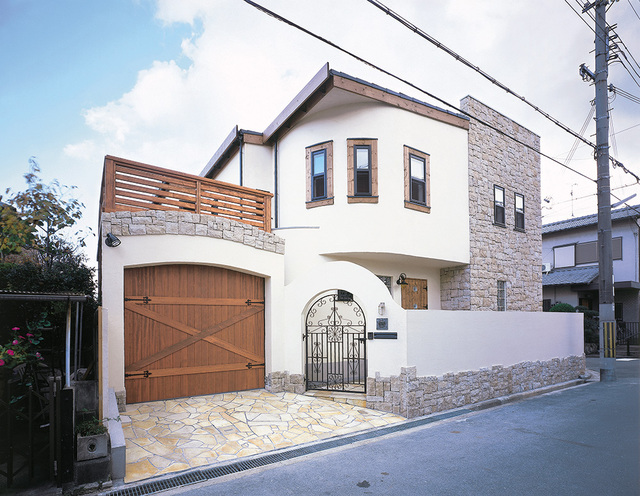 真っ白く輝く漆喰とコーラルストーン(ラフ)がかもし出す重厚且つエレガントな無添加住宅の家。