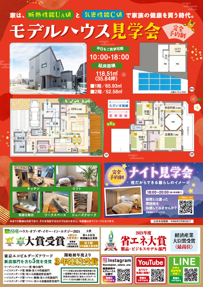 最新の断熱性能UA値や気密性能C値を体感できるモデルハウスを見学できます!