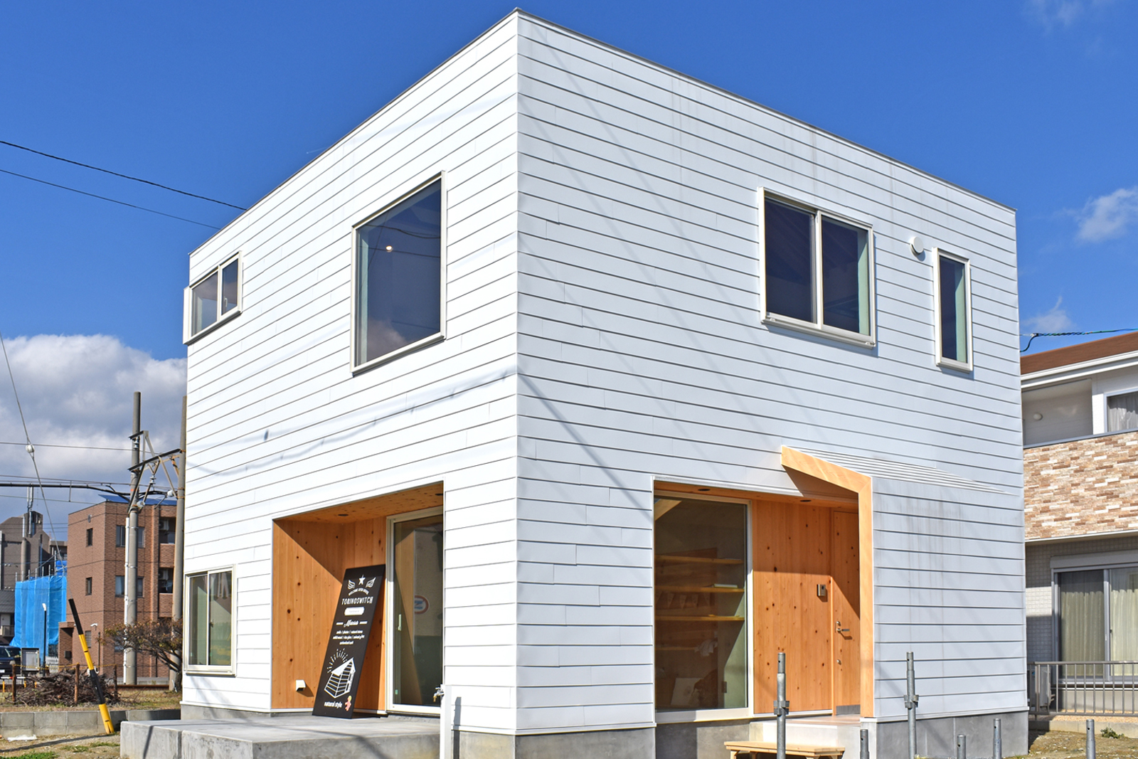 爽やかな白と風合いのある木がよくマッチしています。