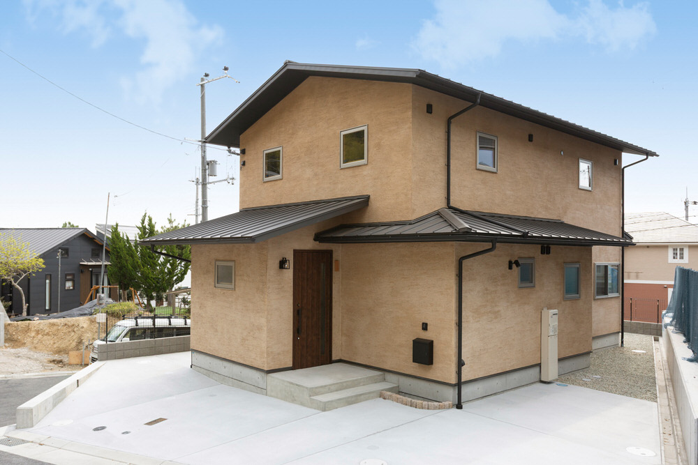 初めて当社に家づくりのご相談をいただいた日から、5年のお付き合いを経てようやく完成したI様邸。 外壁は「そとん壁」(シラス壁)と板張り、内装には漆喰や和紙を用い、自然素材のぬくもりに包まれる住まいとなっています。 高断熱Q1.0住宅で、太陽光発電搭載のZEH仕様です。