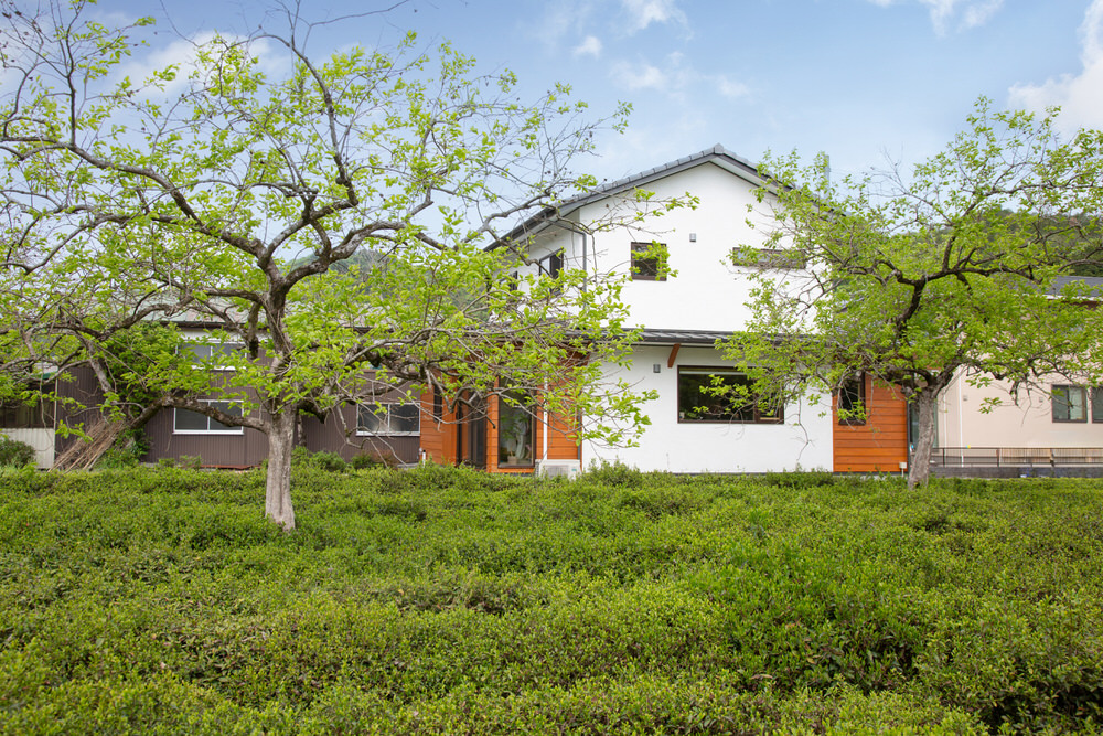 茶畑の柿の木や山が借景となり、居間の大き開口部より四季の移ろいを感じることが出来ます。