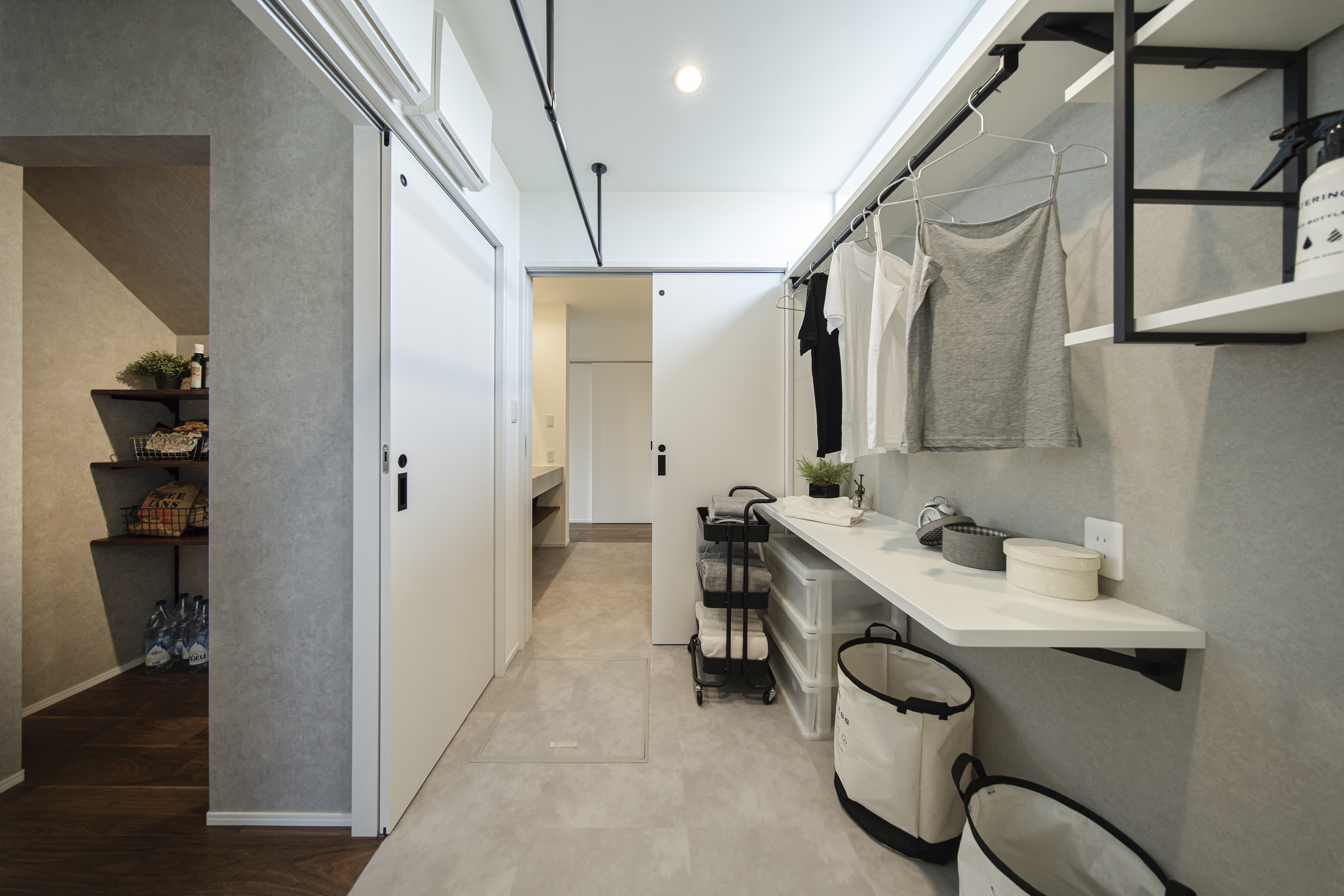 玄関からシューズクロークを通ってファミリークローゼットへ。
