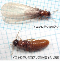 ※シロアリが羽アリになって食べに来ると思っている人がいますが、実際はほとんど地中を通って家に来ます。