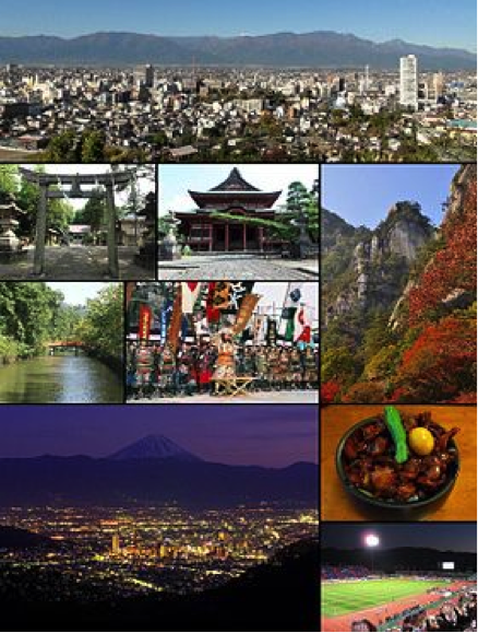 甲府市(こうふし)は、山梨県中部に位置する都市で同県の県庁所在地・特例市です。市域は山梨県の中央を南北に三日月形に縦断しており、市街中心部は甲府盆地の中央北寄りに位置します。山梨県は首都圏整備法上の首都圏に属する県であり、その位置関係から東の関東地方への志向性が強いです。