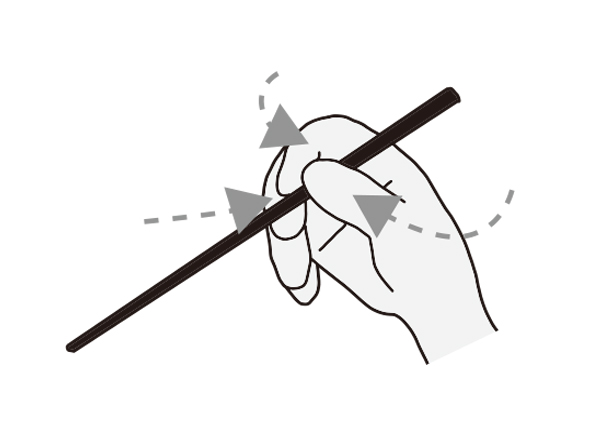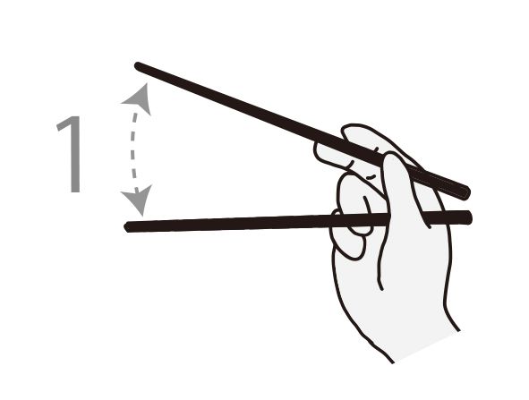 Step4:二本の箸を持ったまま、上の箸だけ動かす。
