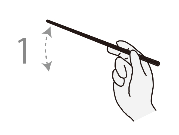 人差し指と中指を曲げたり伸ばしたりして、箸先で「1」の字を書くように、大きくゆっくり動かします。