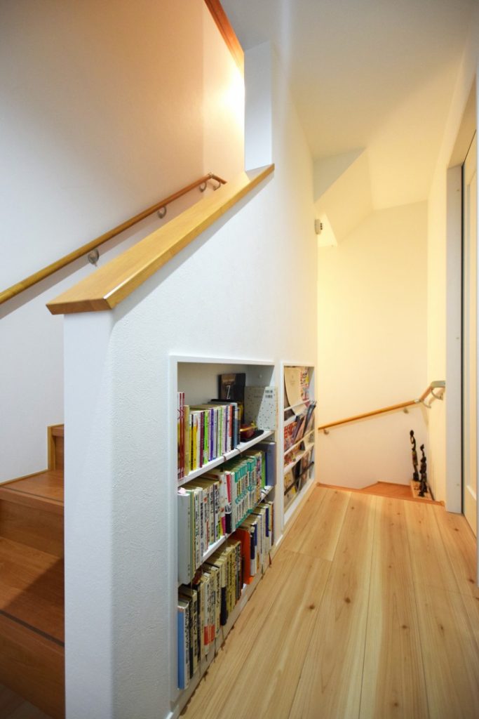- 階段下に扉付きの収納を作り、掃除用具や季節物を収納します。