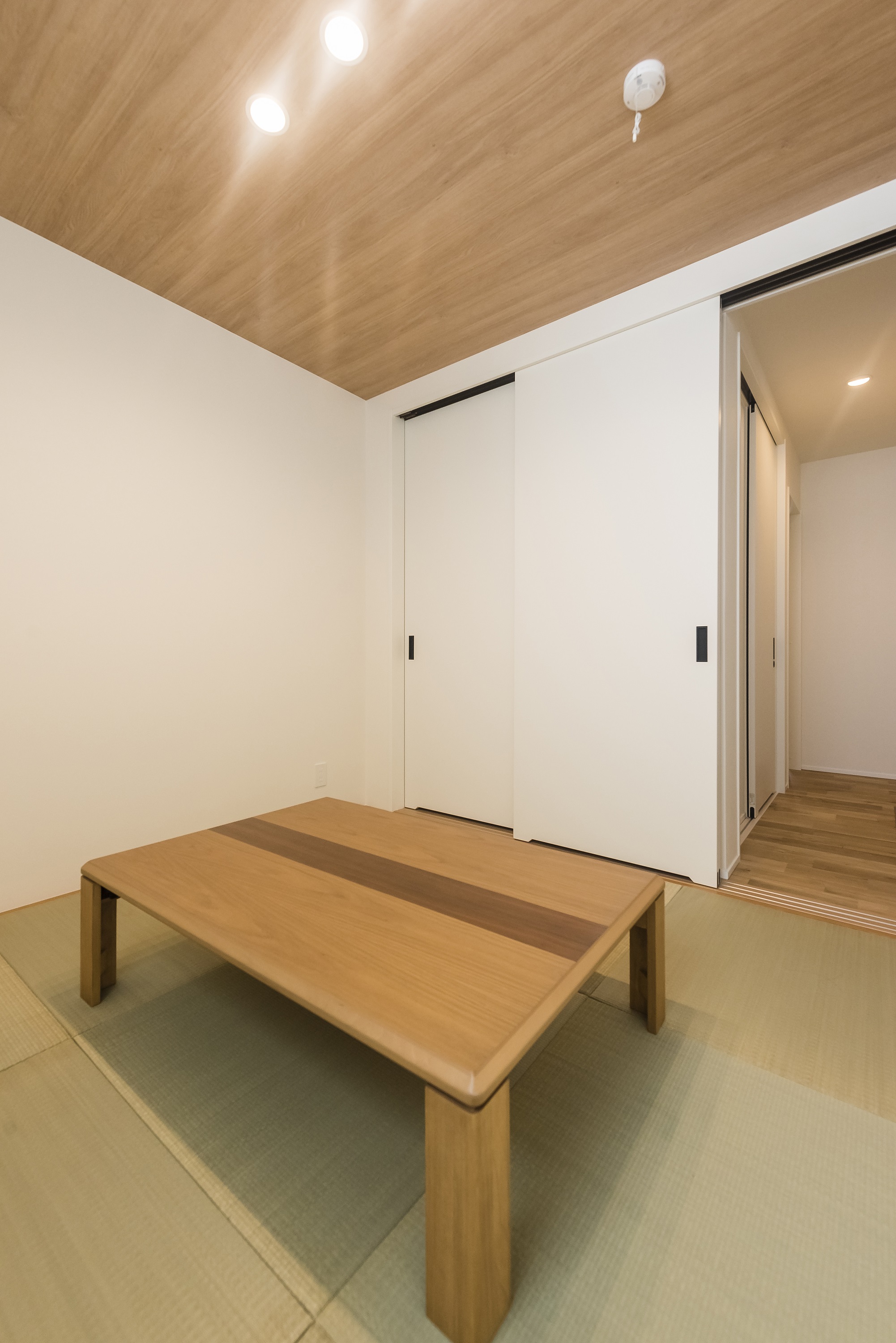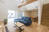 一見すると住宅に見えないような〝高原に建つ美術館のようなイメージ〟を希望されていました。外観は、独特の風合いを味わえる塗り壁に、一部に木目調のサイディングを使用。シャープでありながらも暖かみのあるスタイリッシュな雰囲気に。玄関は中庭が見えるよう配置。限りなくシンプルでありながら、まさに美術館のようなDesign Houseとなりました。来客をもてなす広々とした明るい中庭は、夏には家族でバーベキューなども楽しめます。間取りは動線の良さと広さを感じる様にとのご要望に応え、弊社設計担当者から提案。建具や収納の色や素材にもこだわり、スッキリとした空間になりました。さらにこちらのお住まいはイデキョウホームが得意とする全館空調・太陽光発電搭載の最先端「ZEH」のエコハウス。