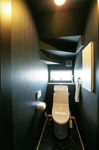 特にトイレは潔いまでのモノトーン。オシャレなカフェのようで、とても印象的です。施主様のご希望は、友人を招いてバーベキューができる裏庭を作ること。その敷地を確保した上で、暮らしやすさを考え豊富な収納スペースを設けました。新たに収納家具を設置する必要がないので、部屋の広さをそのまま活かせ、実際の空間よりもスペースを広く見せることに成功しています。限りあるスペースでも、家族6人がゆったり暮らせる家になりました。