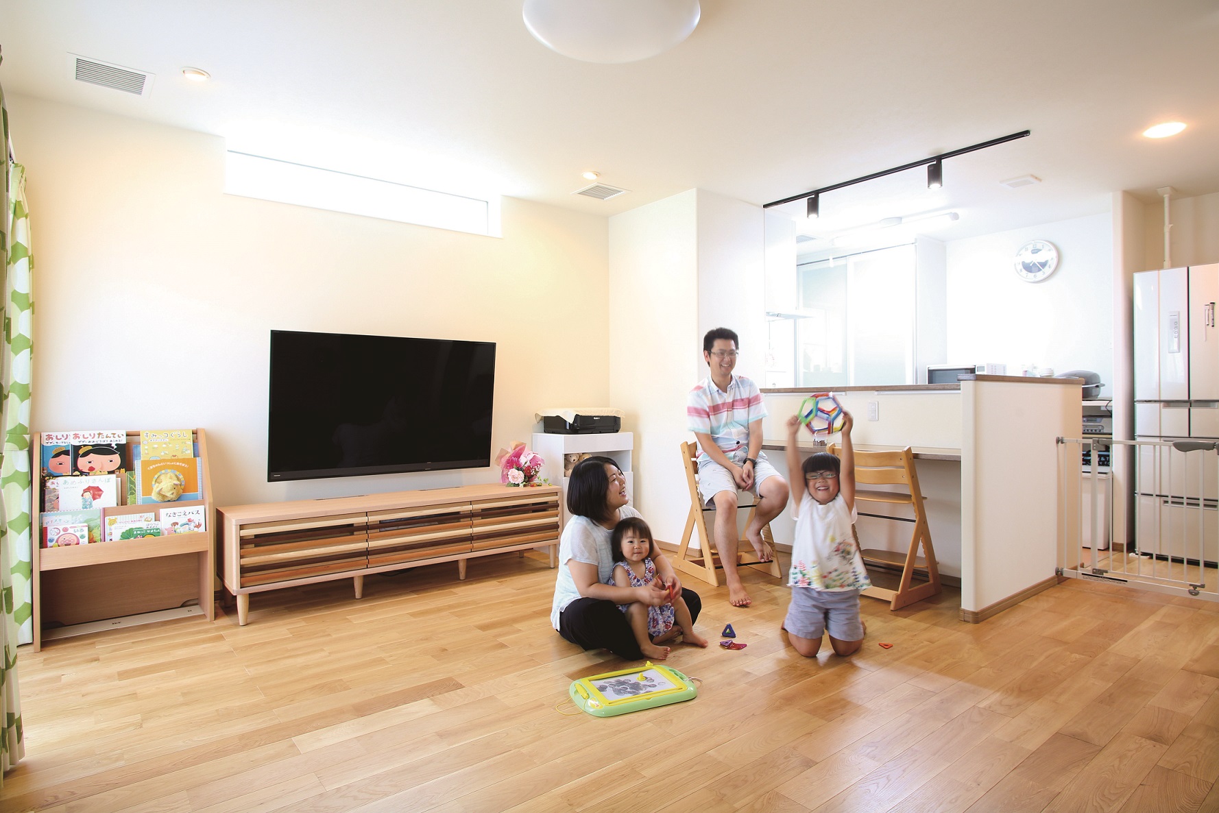 ソファは置かず、リビングの床や階段など、家じゅうの至るところに座って自由に過ごすライフスタイルをお考えだったS様。そして何より奥様とお子様の花粉症がひどかったこともあり、家じゅうをキレイな空気と快適な温度に保つ、当社の「全館空調」に惹かれたようです。