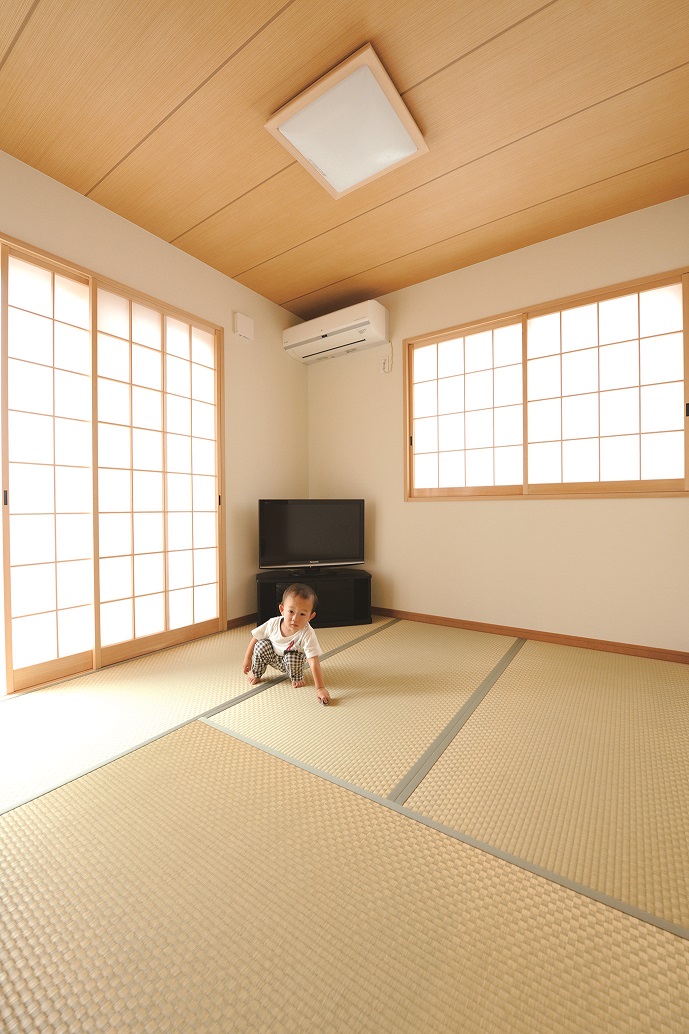そして、『イデキョウホーム』独自のセルロース断熱材「富士産eco断熱」により、現場吹込みで隙間なく充填ができ、部屋間の温度差を小さくし、高い気密性、断熱性を有し、エアコンに頼り過ぎることなく年中快適に過ごすことができます。さらには、木質繊維ならではの調質性や吸音性、防虫・防カビや防音効果もあり、雨音も聞こえないほど静かな住環境を実現します。