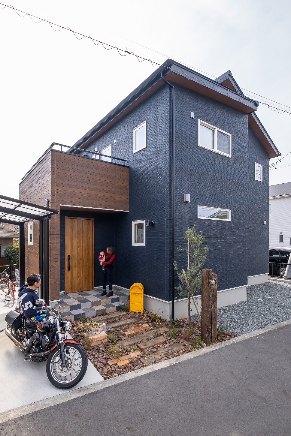 当初は屋上庭園のある家づくりをご希望されていましたが、お話しを進めていくうちに、屋上庭園の変わりにベランダを広くとり、アクセントクロスを多用した個性あふれる内装や、配色が個性的な畳スペースなど、外観・内観ともにご主人のこだわりがたくさん詰まった素敵なお家になりました。