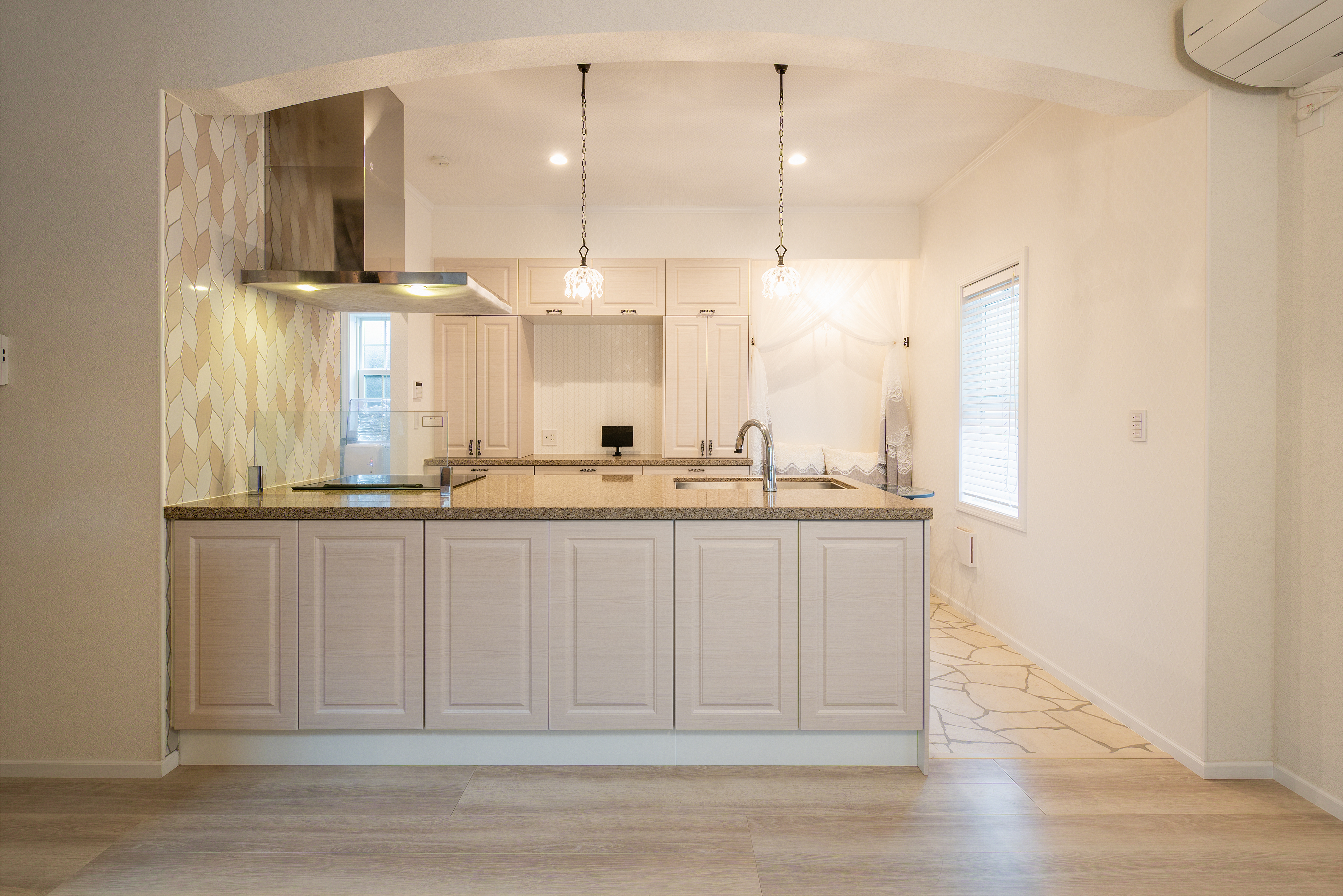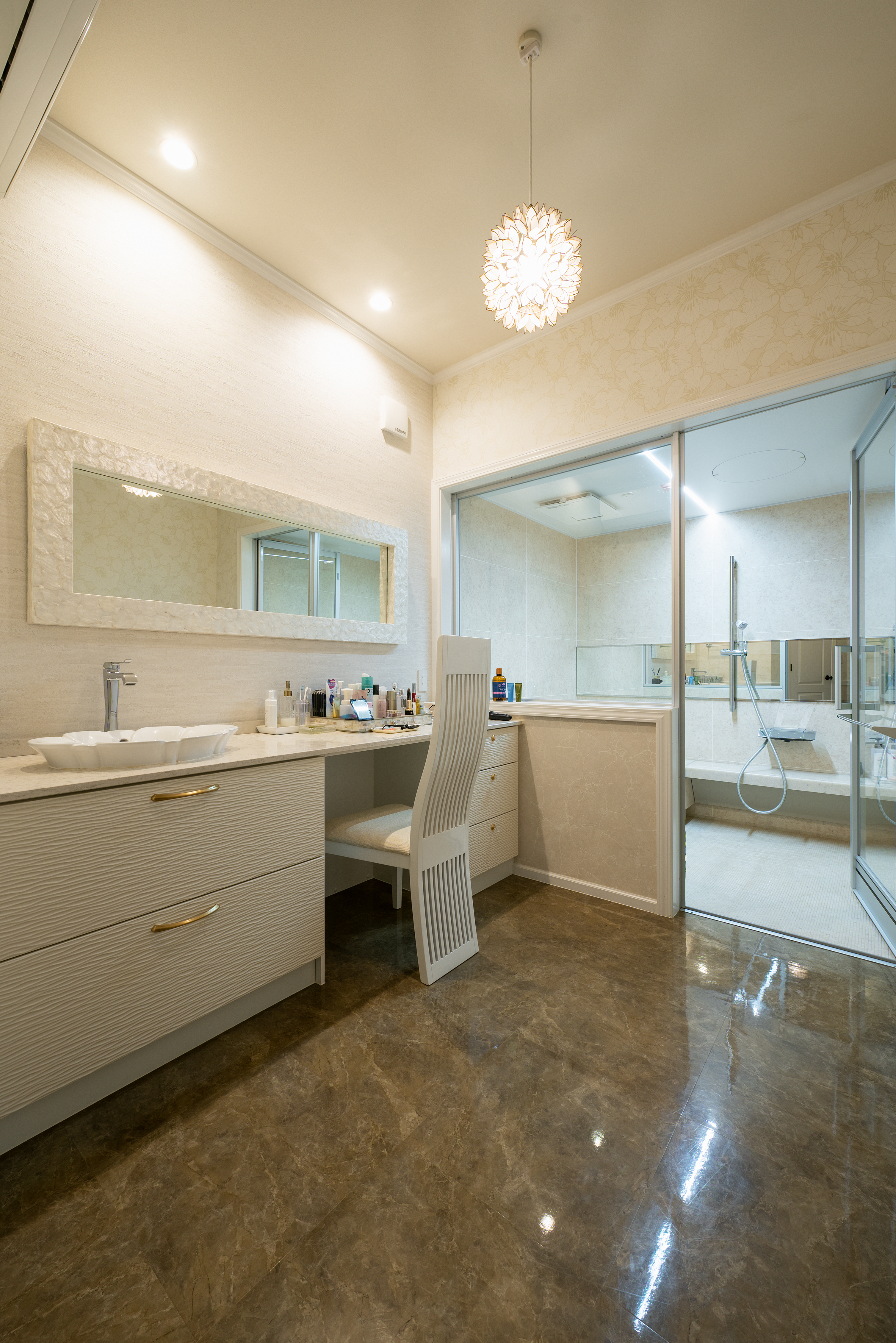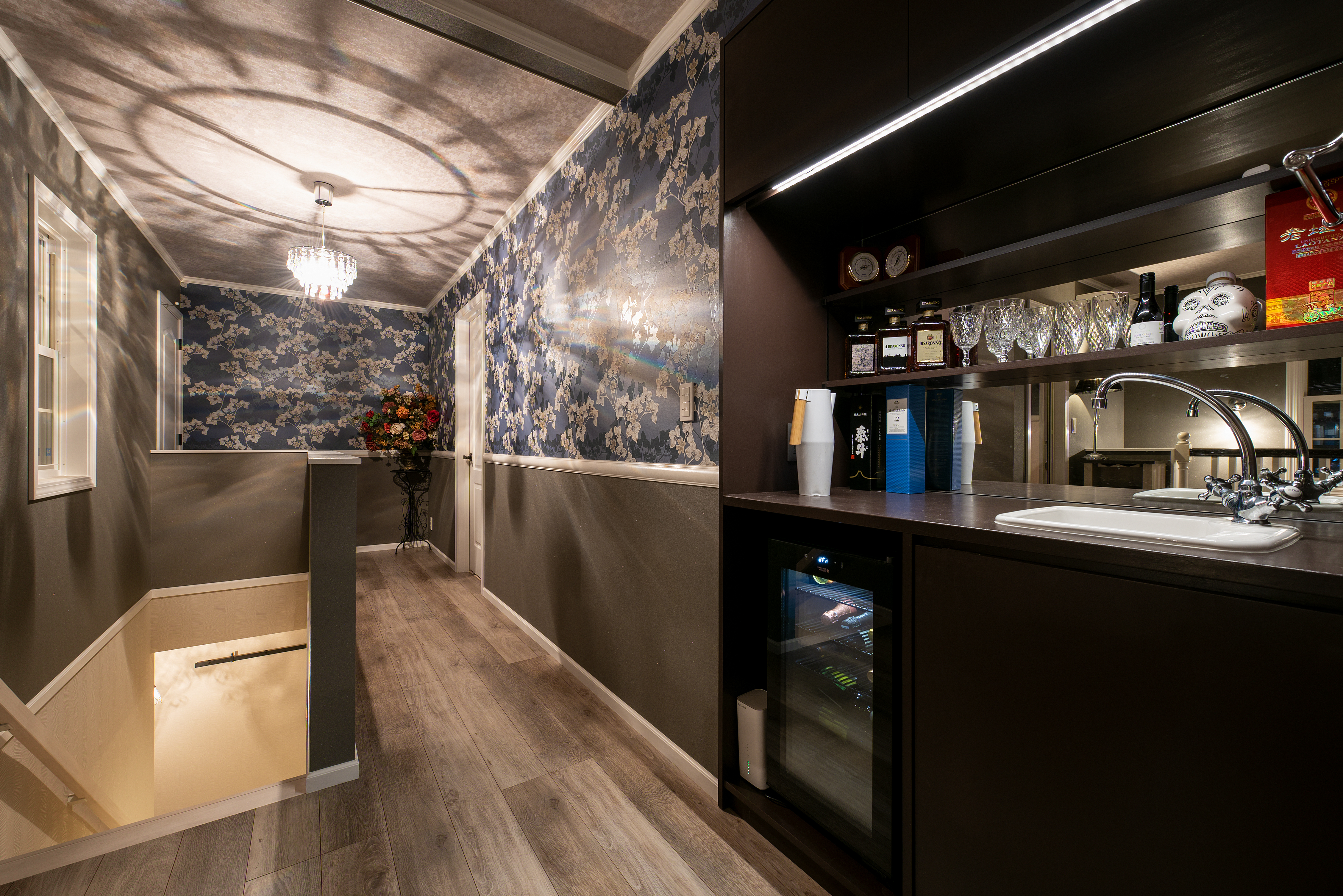 「リゾートホテルのような住まい」を希望していたオーナー夫妻。外構も含め南国リゾートを思わせる外観と、バーベキューやお酒が楽しめるバーラウンジやインナーガーデン、バルコニーを設計に組み込み、ホテルライクなお洒落な内装など、上質なデザインと機能性を両立しました。インナーガーデンには足湯も配置し、ゆったりとお酒を味わったり、家族や友人とにぎやかに過ごせる、まさにリゾートホテルのような家が実現しました。