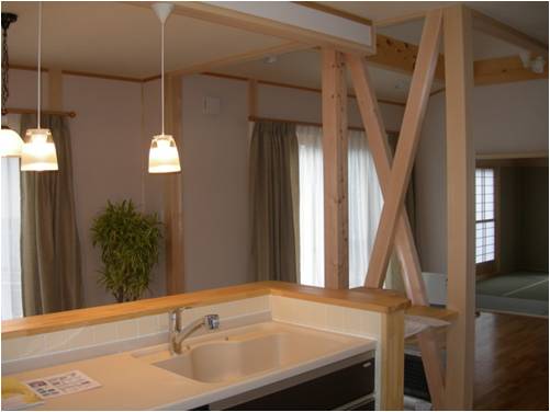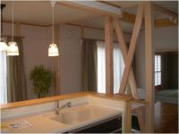 子育てを考えて、奥様が何処にいてもお子様に目が届くように考えられた家です。 LDKはほとんど仕切りを造らず、オープンな空間にしています。 2階もリビングの吹抜けで空間を繋げているので、家族の気配が感じられる家です。