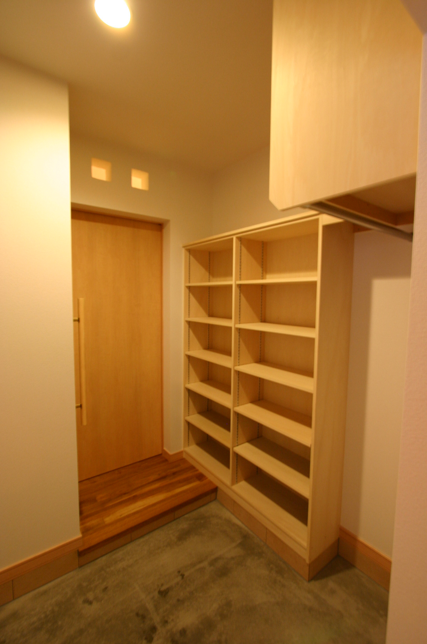 たくさんの荷物を納めることのできるシューズクロークがある玄関から廊下を抜けると、吹き上げ天井のリビングが姿を現します。