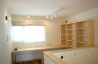 2階のホールは机・本棚のあるフリースペースになっていて、広いバルコニーにも繋がっています。