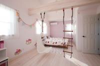仲良く遊ぶ子供部屋の間仕切りは後から出来るようになっていて、子供の成長に合わせ、部屋も簡単に仕切れる設計。