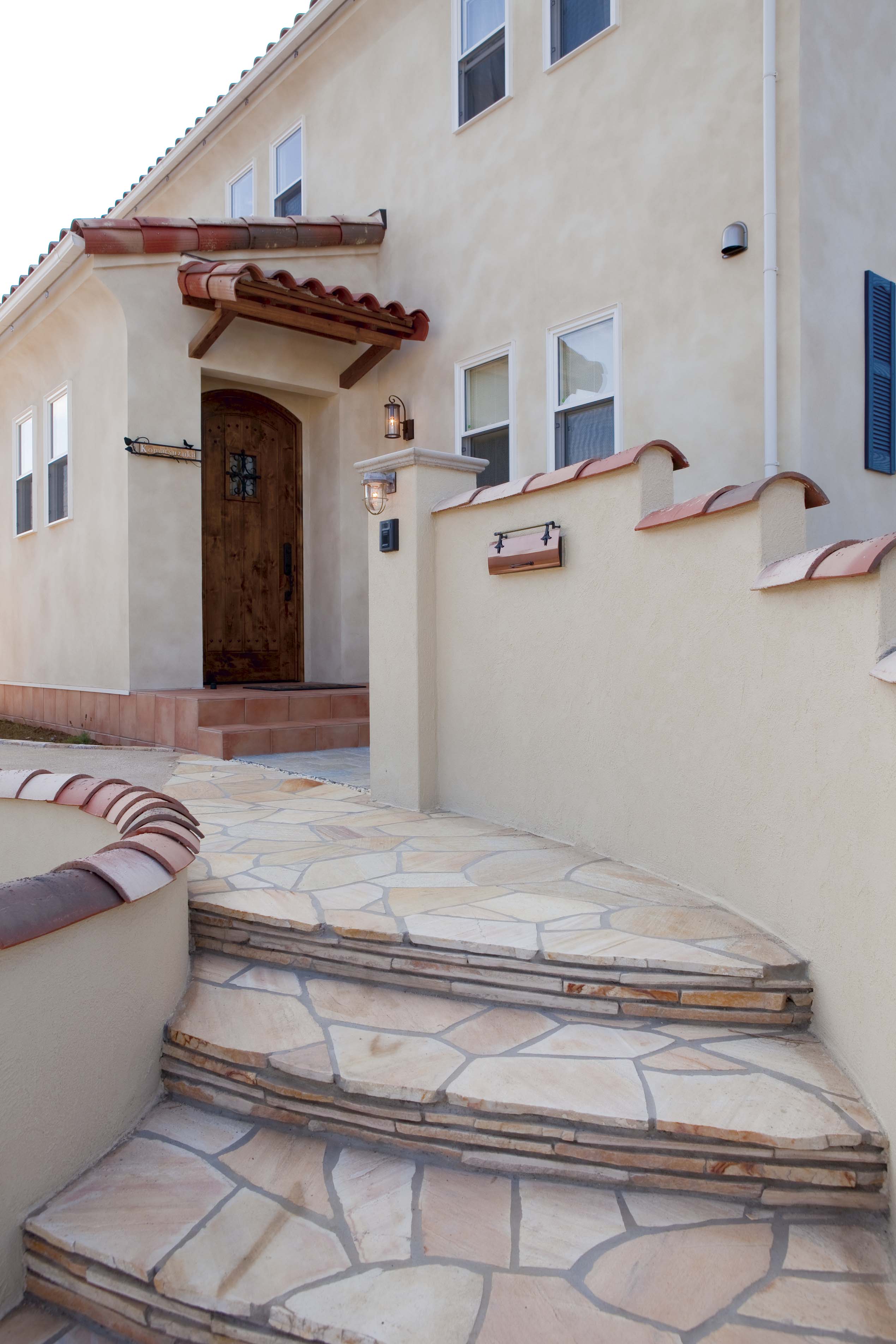 世界にたった1つの家!外観はお客様こだわりの汚し壁で演出、何年にもわたり塗り替えられたプロヴァンスの外壁の風合いが現実のものとなりました。屋根瓦は、フランス直輸入の瓦を使用、建物全体とマッチしています。
