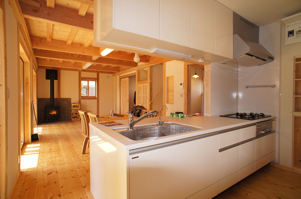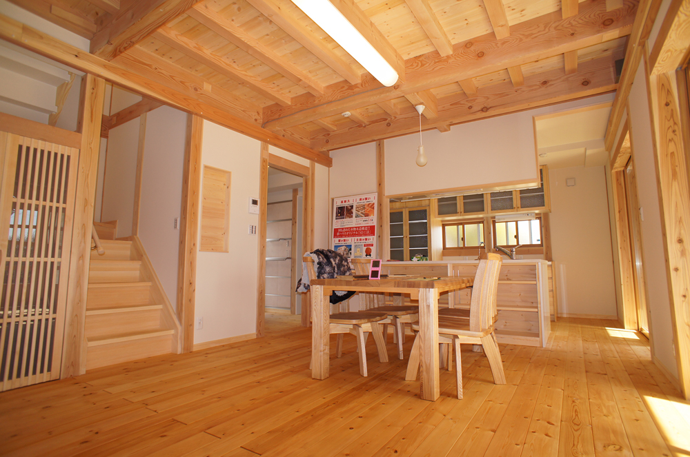 断熱+遮熱で基本性能に優れ、バイオマス熱利用の薪ストーブで暖房する、真冬でもTシャツで過ごせる驚きのお宅です。 室内は無垢素材で仕上げられた、安心、安全、快適な居心地満点のお宅です。